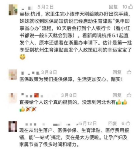 在国家医保局微信公众号留言区,满是群众的真切反馈:“异地生育也能直接领津贴,不用来回奔波办手续,太方便了!”“原来要等两个月,现在不到半个月就到账,缓解了育儿开支压力”“灵活就业人员也能享受生育津贴,服务直达,政策越来越贴心”……一句句朴素的留言,道出了无数生育家庭的共同心声,也印证了改革的民生价值。