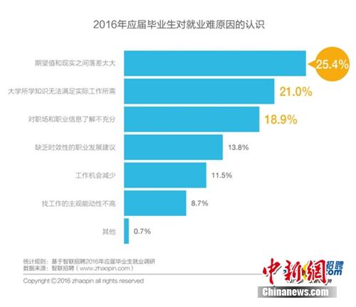 某知名招聘网站招聘高级职业顾问接受中新网采访时表示,“经调研发现,有很多大学生认为期望值和现实之间落差较大,这一方面反映出今年的就业形势中,企业提供的工作与大学生的预期存在一定差距。另一方面也反映出大学生的就业能力没有得到企业雇主的普遍认可。”