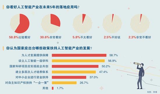 应出台哪些政策扶持人工智能产业发展?58.7%受访者希望为人才发展提供保障
